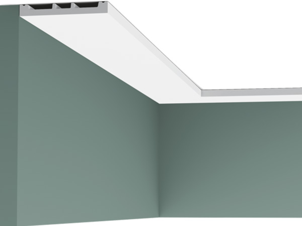 Flexible version of the SX163. Our simplest cornice moulding forms part of the SQUARE family. Thanks to Flex technology, rounded walls or curved surfaces are no problem. Note: Use DecoFix Pro or DecoFix Power adhesive. The piece must be screwed into the wall. Flex Radius: R min = 35cm