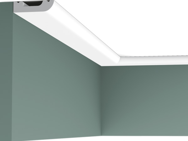 Flexible version of the SX182. This multifunctional cornice moulding with rounded top offers endless possibilities. Thanks to Flex technology, rounded walls or curved surfaces are no problem. Note: Use DecoFix Pro or DecoFix Power adhesive. The piece must be screwed into the wall. Flex Radius: R min = 35cm